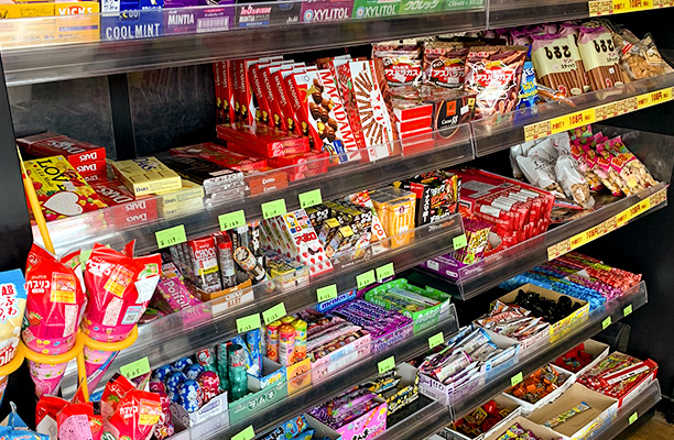 お菓子や駄菓子なども種類豊富。お子様からお年寄りまでご来店いただいております。
