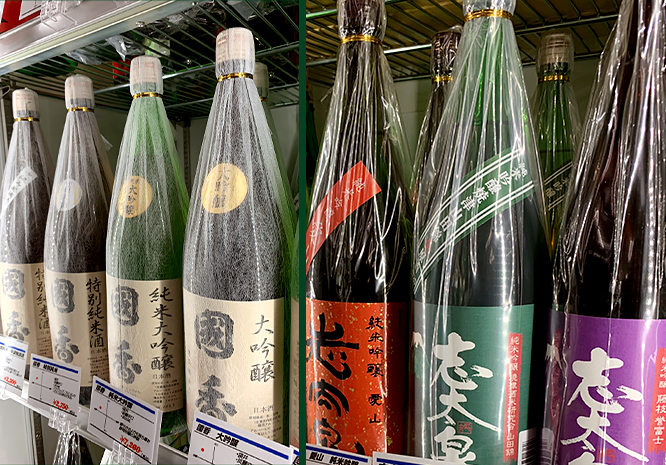 店内の日本酒、ワインは