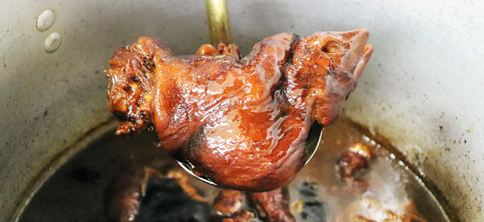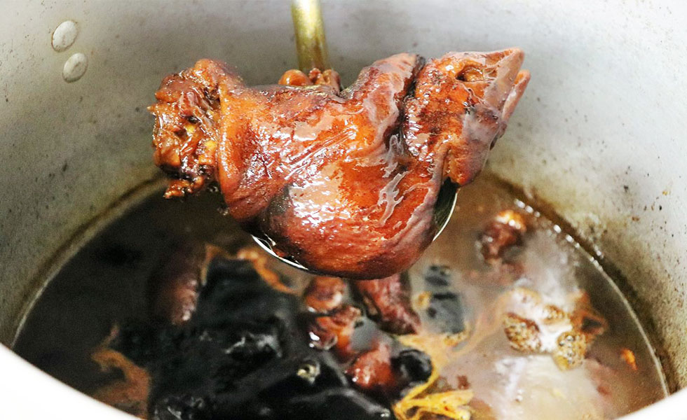 こうして出来上がったおもろは、市販されている真っ白い豚足とは違い、自然な焼き色が付いていて身が柔らかく、1本1本丁寧に下ごしらえされたことがわかります。