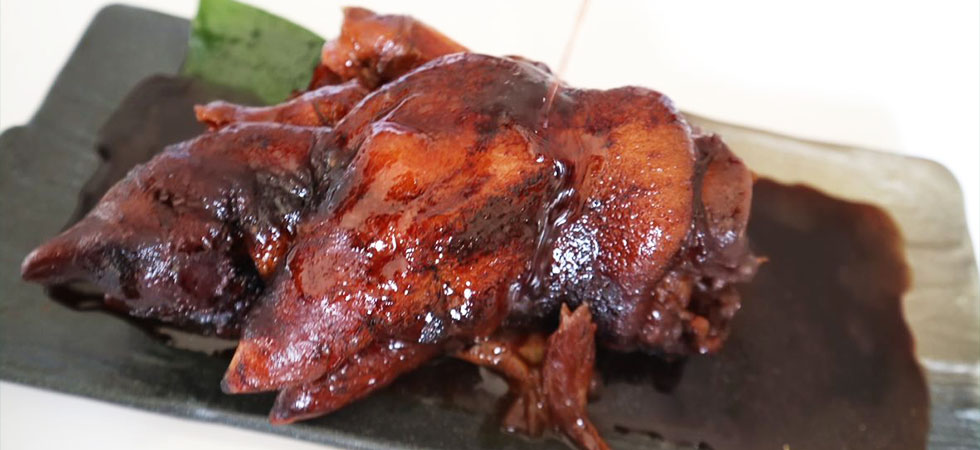 その為出来上がった豚足は真っ白く、皮もつるつるで煮込んでも佐藤さんのおもろに比べてタレの味が染み込みにくいと言われています。 - ガスバーナーで焼くと、毛穴に焦げた匂いが付いてしまうため当店では使用しておりません。