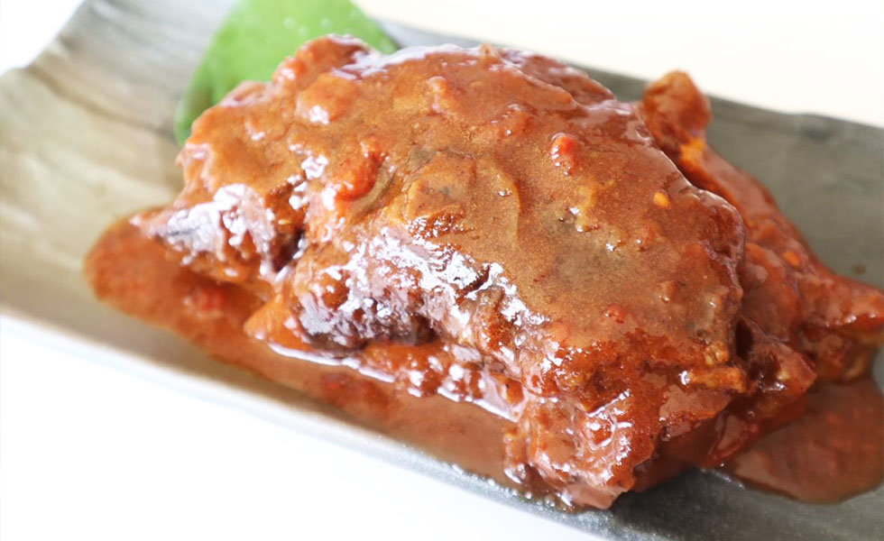 醤油ベースの秘伝のタレでじっくり煮込んだ人気の定番商品で、独特の臭みもなく女性や子供でも食べやすいと評判です。